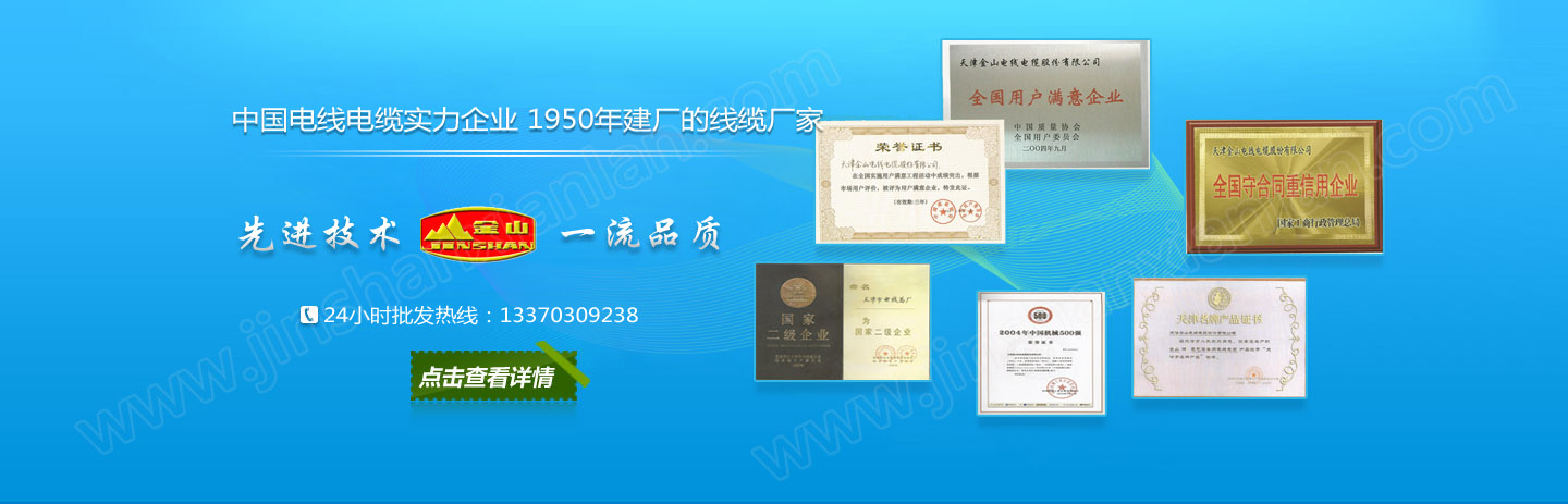“金山牌”商標為天津市著名商標,“金山牌”電線電纜獲得“金龍獎”、“銀牌獎”、“機電部質量管理獎”、“用戶滿意產品”、“天津市名牌產品”、和“國內市場受歡迎的天津產品”、重合同守信用企業等多項榮譽。金山電纜公司被評為共青團“中央青年文明號”、中國質檢協會“質量誠信示范企業”、國家統計局“百家電氣機械器材制造企業”等...[金山電纜榮譽證書]